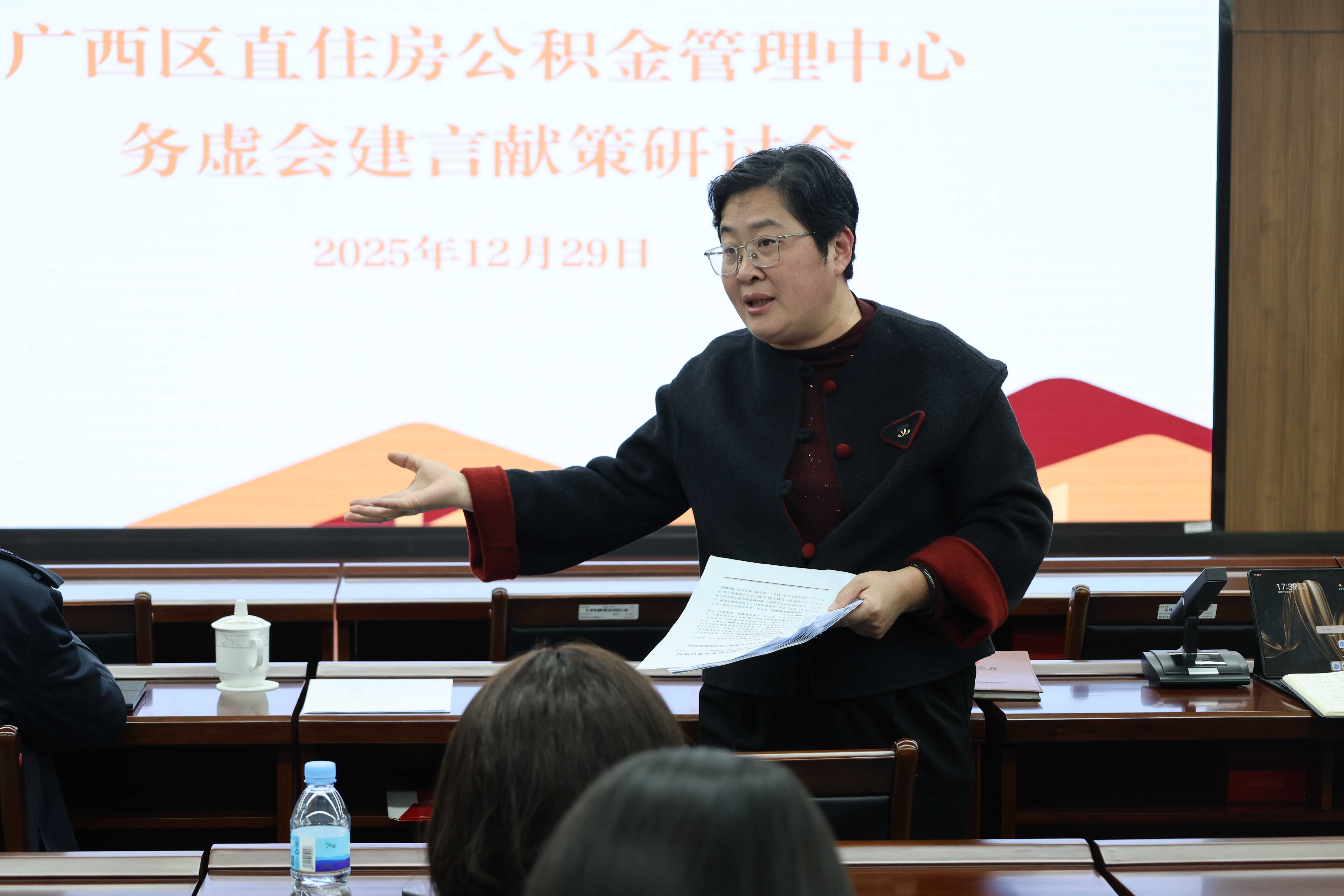 为做好自治区机关事务管理局2026年务虚会筹备工作,2025年12月29日,广西区直住房公积金管理中心召开务虚会建言献策研讨会。各部门围绕业务服务工作深入研讨、集思广益,打磨形成数篇高质量发言文稿。